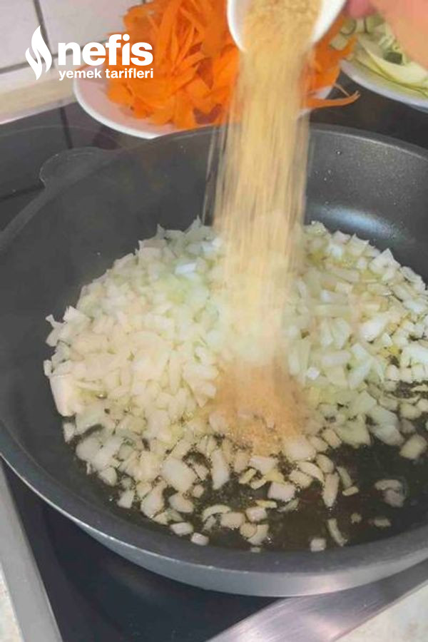 1. Soğanları ince doğrayın, zeytinyağı ve şekerle karamelize olana kadar kavurun.