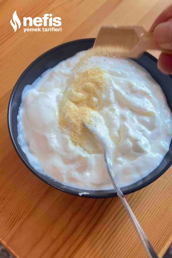 5. Yoğurtlu sarımsak sosu hazırlayın: yoğurdu, sarımsak tozu ve tuzla karıştırın.