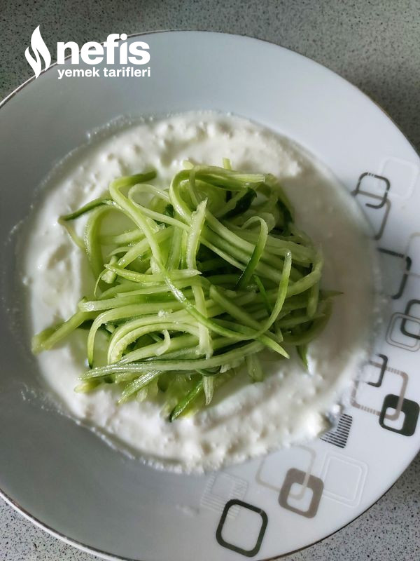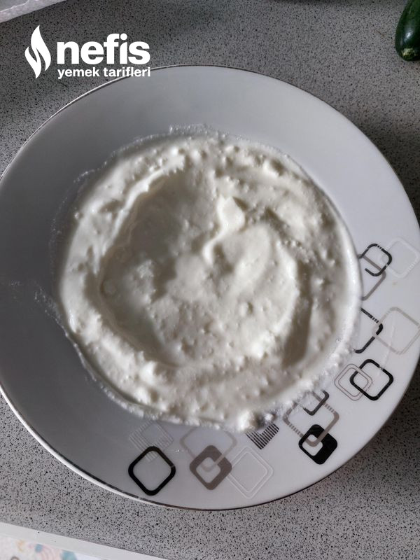- Tabağımıza yoğurdu koyup üzerine sarımsak rendeliyoruz güzelce karıştırıyoruz.