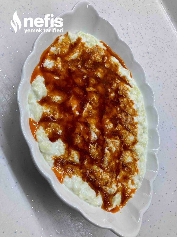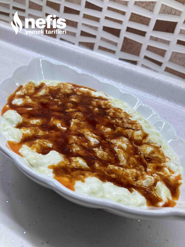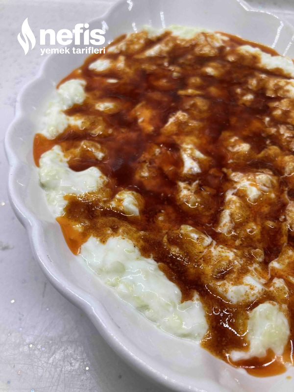 - Üzerine yağda yaktığımız kırmızı toz biber sosunu dökelim.