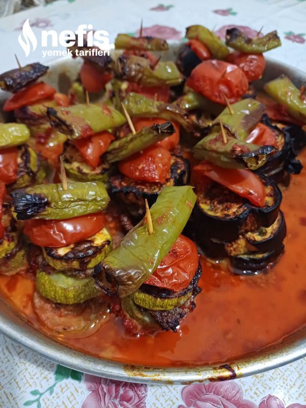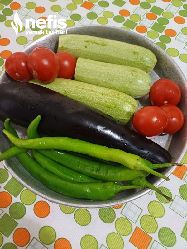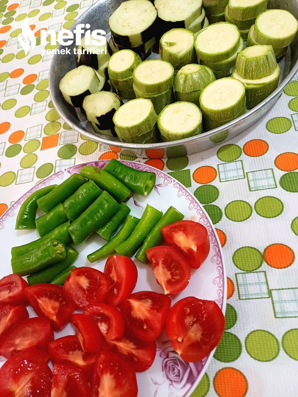 Not! domates ve biberler sebzelerden evvel piştiği için isterseniz sonradan tepsiye ekleyebilirsiniz yada kabak ve patlıcandan evvel çıkarabilirsiniz.