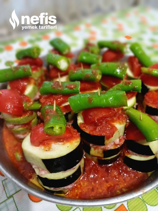 - Aynı süreci patlıcan içinde yapıyoruz ,kalmaması içinse üsten kürdanla sabitleyebilirsiniz.