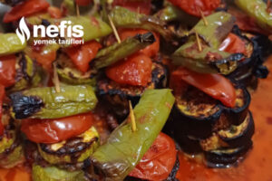 - Aynı süreci patlıcan içinde yapıyoruz ,kalmaması içinse üsten kürdanla sabitleyebilirsiniz.