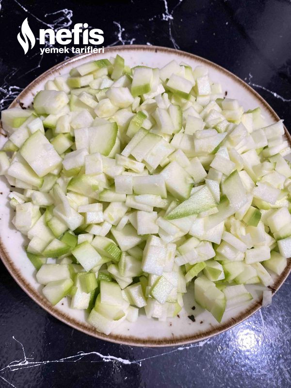 - Sonrasında küp küp doğradığımız kabakları ekleyip karıştırıyoruz.