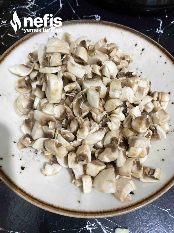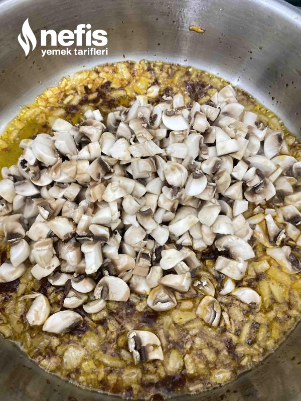- Ardından küp küp doğradığımız mantarları ek edip karıştırıp, kapağı kapatıp 2 dakika bekletiyoruz.