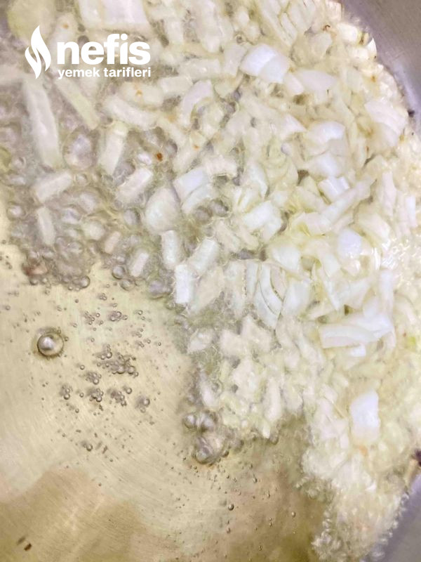 - Tencereye yağımızı döktükten sonra soğanlarımızı pembeleşinceye kadar kavuruyoruz.