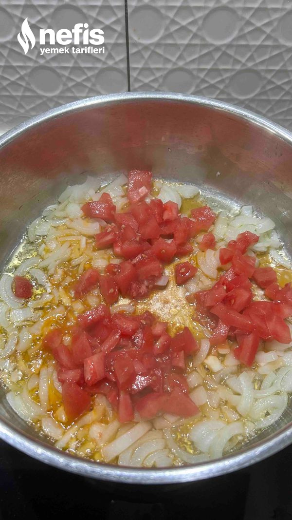 - Sararan soğanlarımızın üzerine domateslerimizi koyup kavurma sürecine devam edelim.