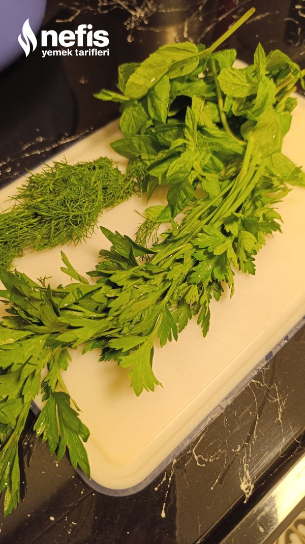 - İçine ince doğradığımız nane ,maydanoz ,dereotunu, soğanı ekleyip, limon ,tuz ve sıvı yağ ek ederek karıştırıyoruz.