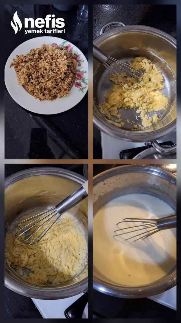 - Hazır olan muhallebiye kadayıfı ek edip karıştıralım ve 1-2 dk daha karıştırarak kaynamaya bırakalım.