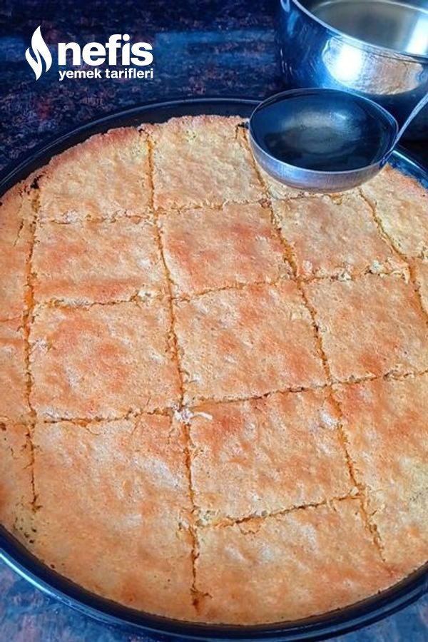 7. Süre sonunda fırından aldığımız keki sıcakken bıçak ile dilimleyerek üzerine soğuk olan şerbeti her yerine gelecek halde yayalım ve 1 saat kadar şerbetini çekene kadar bekletelim.