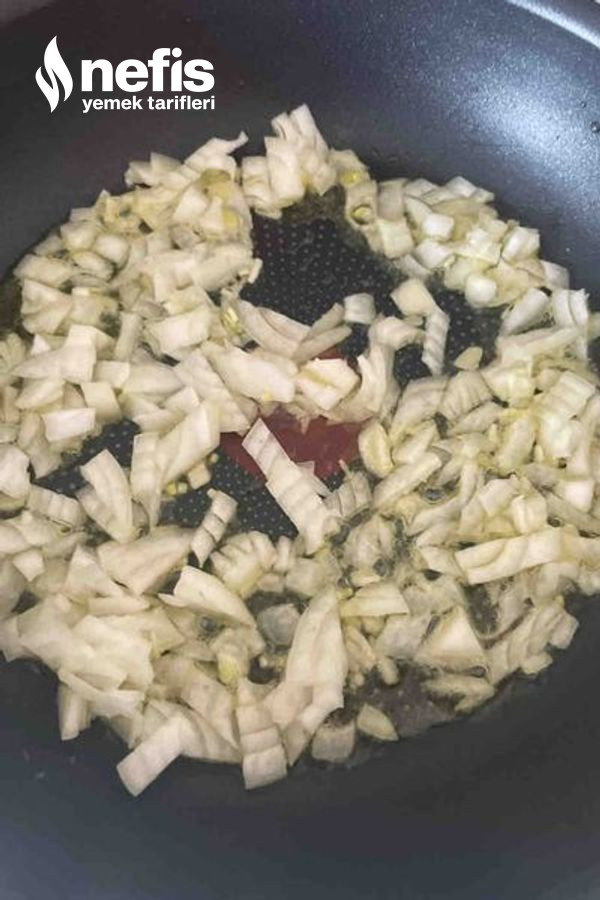 - Küçük küp doğranmış soğanı ekleyelim pembeleşene kadar kavuralım.
