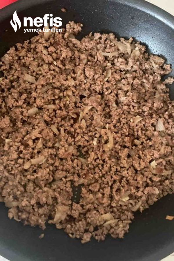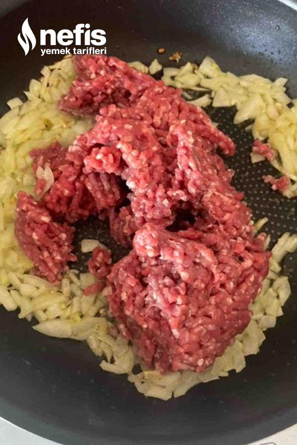- Ardından kıymanın 300 gramını ekleyelim.