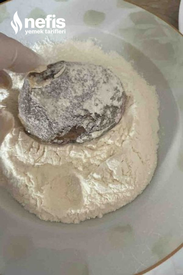 - Elimizle biçim verelim. (60-80 gram yükünde hafif oval ve yassı) en az 30 dakika kadar buzdolabında dinlendirelim.