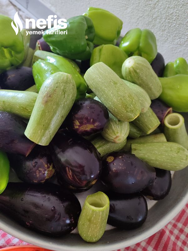 1. Tüm iç gereçler ince ince doğranıp karıştırılır hazır edilir. Dış materyallerin de içi oyulur yıkanır hazır edilir.