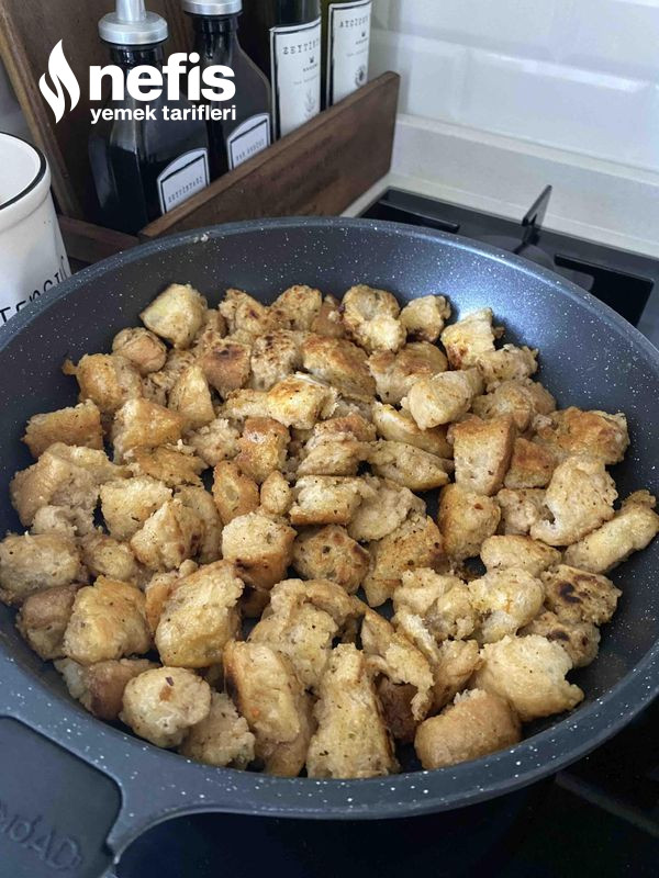 - Tavaya yağ ek edip ekmekleri tavaya alalım kızartalım, kızarırken kaşıkla ayırın yapışacaktır.