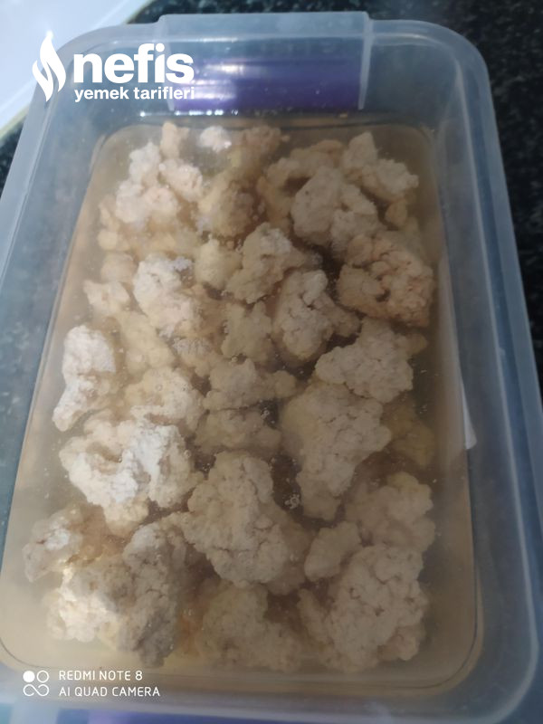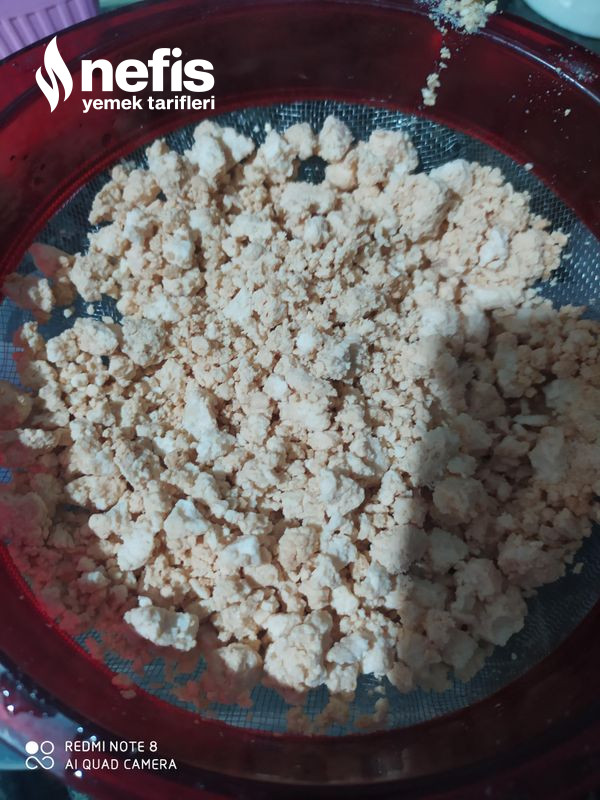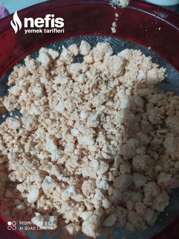 3. Daha sonra geceden beklettiğimiz çökeleği elimizle iyicene ufalayalim ve 2 kere suda yıkayalım.