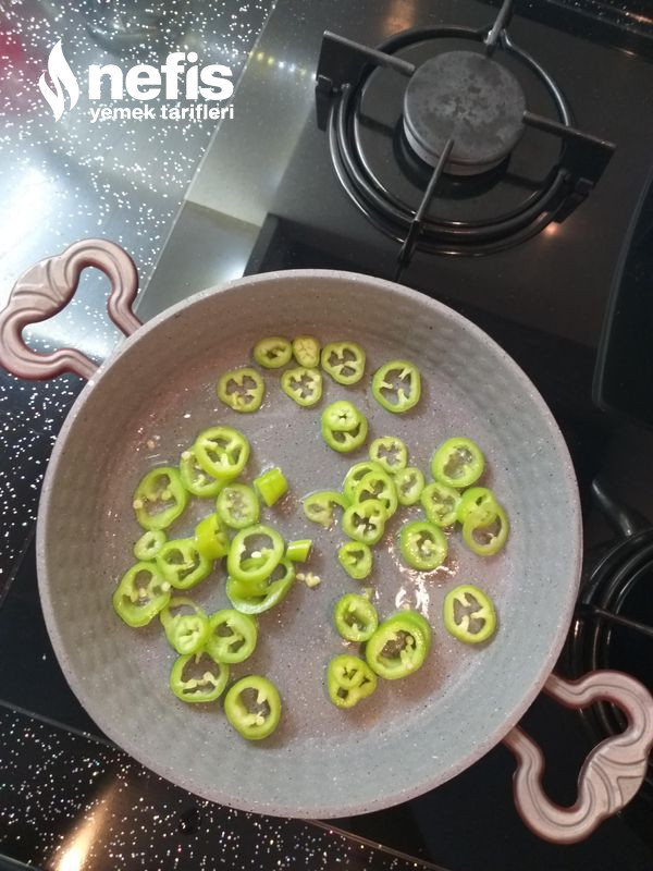 1. Öncelikle tavaya yağımızı koyup biberleri biraz soteliyoruz.
