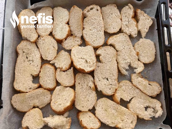 4. Karıştırdığınız harcı dilimlediğimiz ekmeklerin üstüne sürüyoruz.