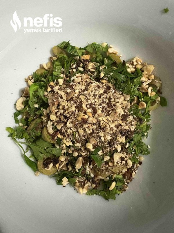 - Maydanozları ince ince doğrayıp zeytinlerin üzerine koyalım.