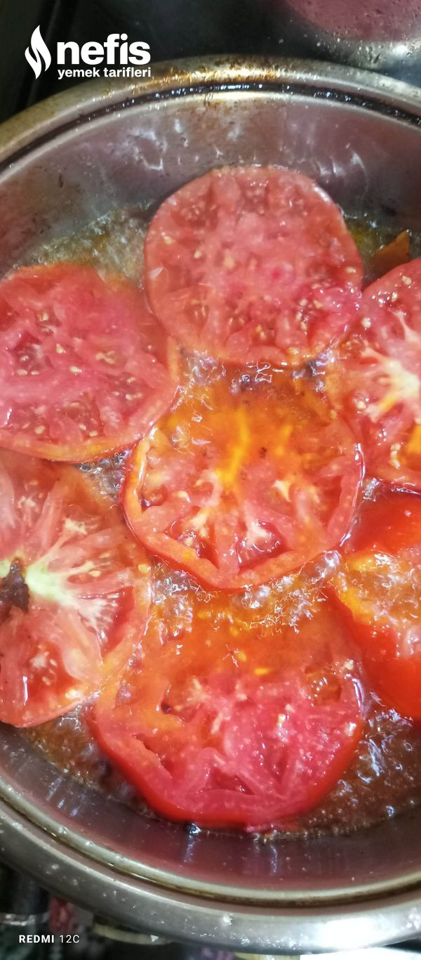 - İlk evvel tavaya sıvıyağını koyun domatesleri yuvarlar bir halde kesip yağın üstüne koyun üstüne tuzu serpip, biraz kızardıktan sonra öbür tarafında çevirip kızartın.