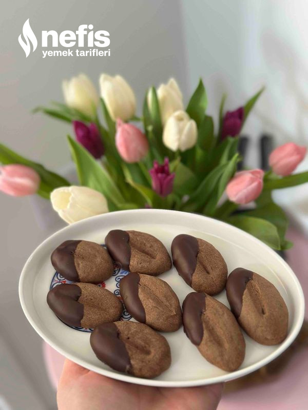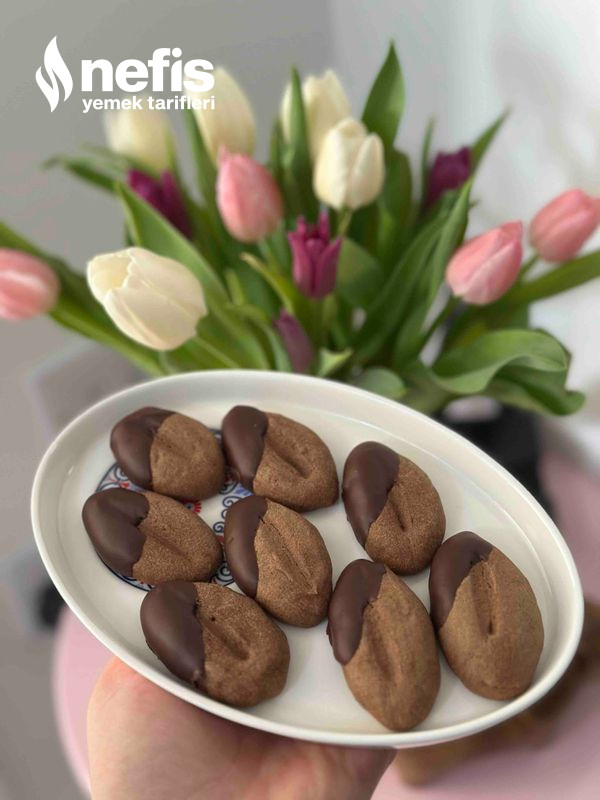 - Fırından çıkan kurabiyeleriniz büsbütün soğuduktan sonra yarısını çikolataya bandırıp yağlı kâğıdın üzerine dizin.