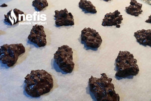- Yağlı kağıdın üzerine kaşıkla çikolatayı döküp, dolapta soğutunuz. Afiyet olsun.