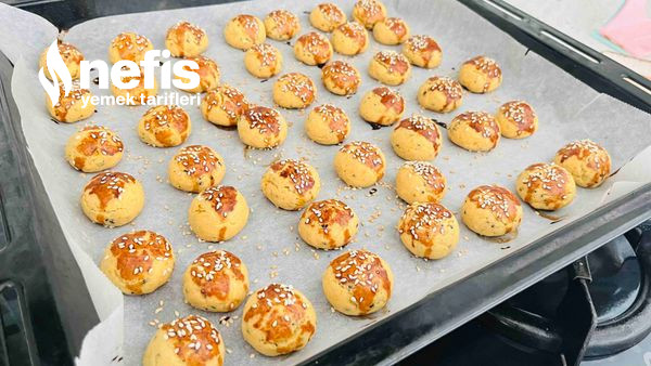 - Hamurdan modüller alınıp avuç içersinde yuvarlanarak yağlı kağıt serilmiş tepsiye dizilir.