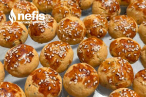 - Yumurta sarısı sürülür susam serpiştirilir.