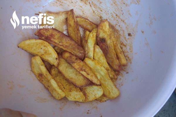 - Ayrı bi kasede dilim patates tuz ve baharatı karıştırın.