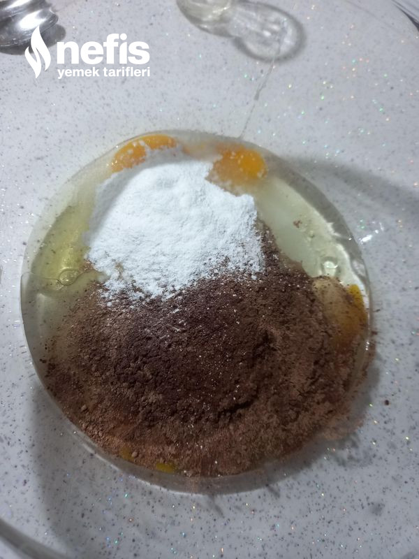 2. Ardından kakao ,kabartma tozu ve şekerli vanilini de ekleyip yoğuralım, yumuşak kıvamlı bir hamur elde edelim.