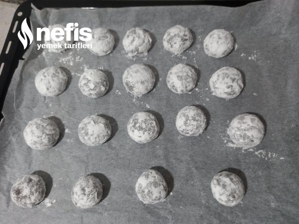3. Pudra şekerine bulayıp evvelce ısıtılmış 180 derece fırında 10 dakika pişmeye bırakalım, servise hazır. Afiyet olsun.