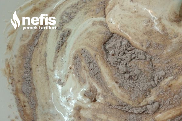 - Diğer tarafta kuru materyalleri karıştıralım, un ,kabartma tozu ,kakao ekleyin.