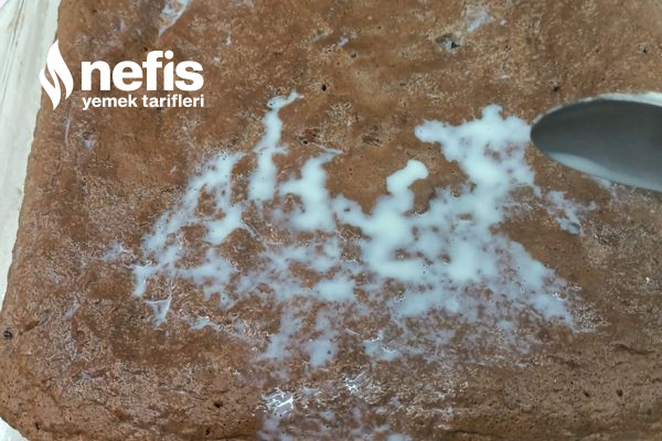 - Fırından çıkan kekimizin üzerine bir bardak ılık sütü yedirelim sütü yedirdikten sonra üzerine çikolata sosumuzu dökelim .