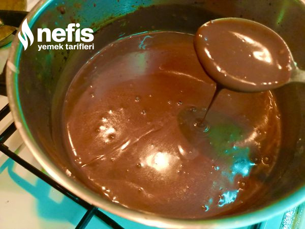 - Çikolata sosu üretimi sütün içine çikolata hariç gereçleri koyup pişirelim yoğunlaşıp göz göz olunca çikolatayı ekleyip güzelce karıştırıp eriyince ocaktan alalım.