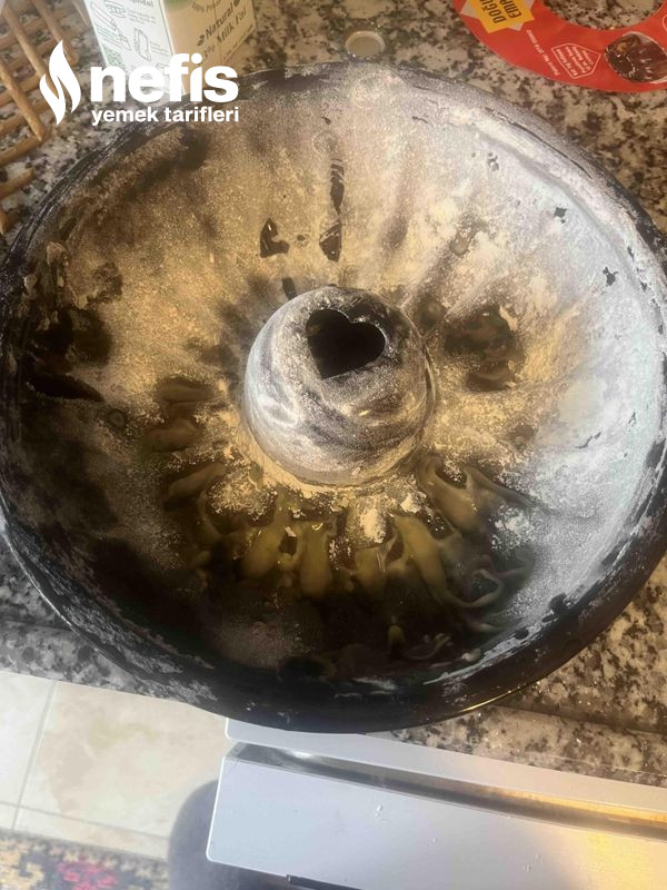- Kakao ,kabartma, vanilya ve unu ekleyelim koyu kıvamda olunca yağlanmış kek kalıbına ekleyelim.