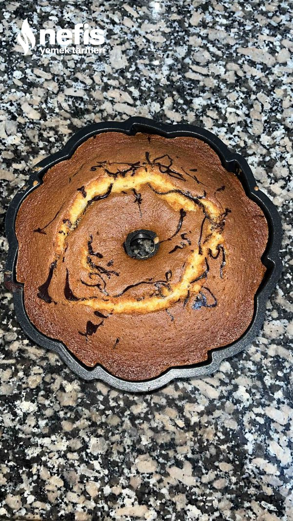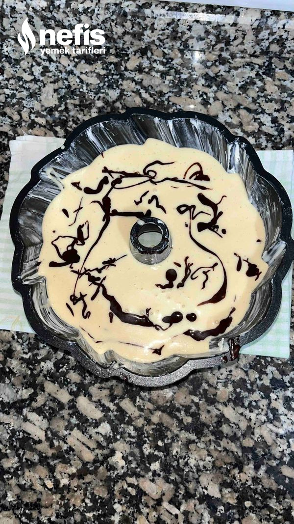 - Yağladığımız kek kalıbımıza evvel sade hamurumuzdan bir ölçü dökelim, akabinde kakaolu karışımdan da gezdirerek dökelim. Hamurlar bitene kadar bu formda devam edelim.