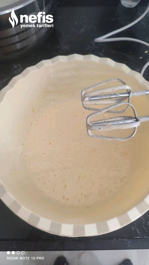 3. Hepsini güzelce çırptıktan sonra yavaş yavaş un ek edelim.