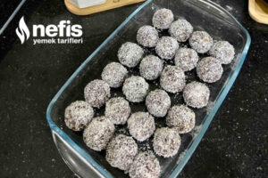 - Karıştırdıktan sonra bir tabağa hindistan cevizini koyup yuvarlak formlar verip hindistan cevizine buluyoruz afiyet olsun.