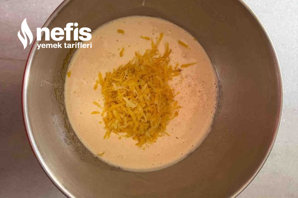- Sütü, sıvı yağı, limon rendesi ve suyunu ekleyip karıştırmaya devam edelim.