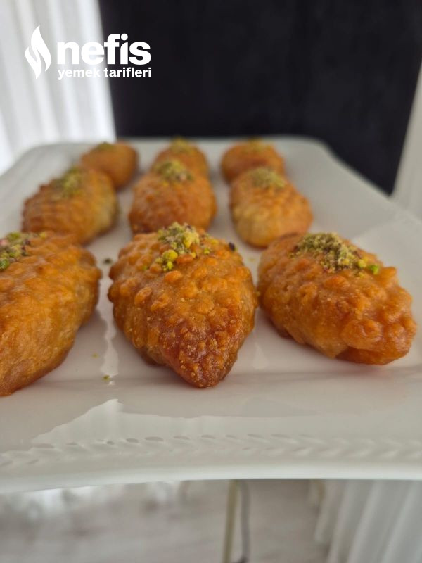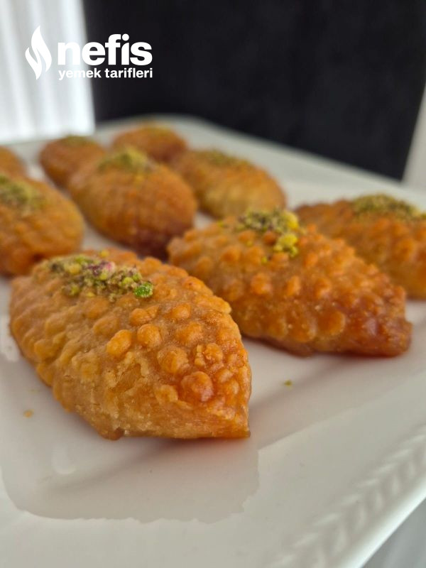 - 2 saat dinlendikten sonra üzerini toz antep fıstığı ile süsleyip servis yapalım.