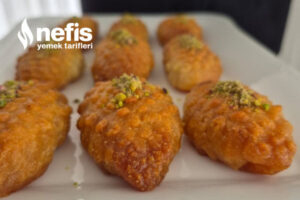- 2 saat dinlendikten sonra üzerini toz antep fıstığı ile süsleyip servis yapalım.
