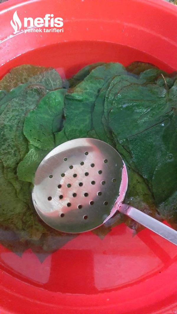 - Bir tencerede su kaynatılır, yıkanan yapraklar kaynar suya sokup çıkarılır fazla kaynatmayın yapraklar narindir.
