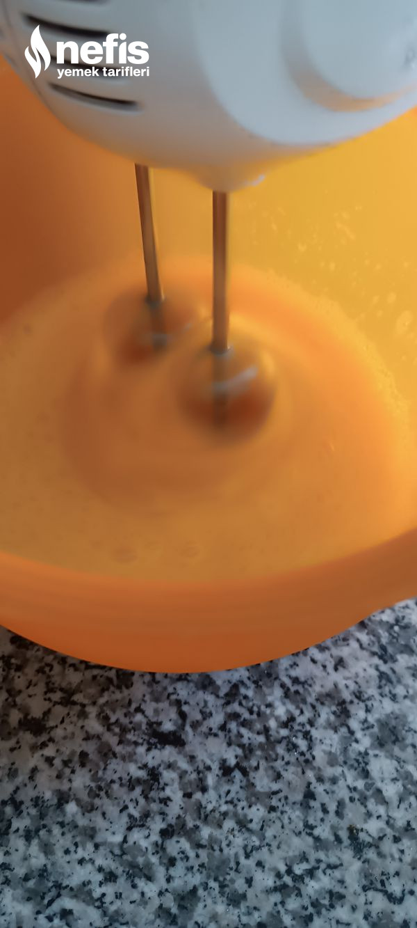 - Ayrı bir kapta yumurta ve şekeri çırpıp süt, sıvı yağ ekleyip, un karışımını ekleyelim yalanmış kalıba koyup 150 derecede pişirelim.