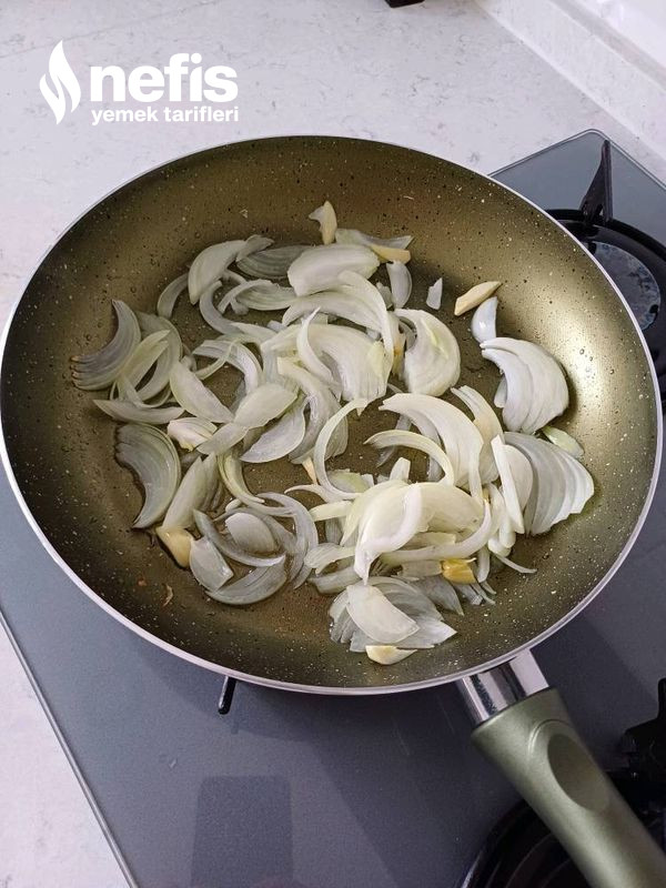 2. Diğer tarafta 1 adet soğanı piyazlık doğrayalım zentinyağı eklediğimiz tavada sotelemeye başlayalım iki diş sarımsağı doğrayarak ek edelim.