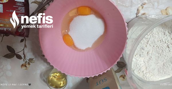 - Önce yumurta ve şekeri ilave edin şeker biraz eriyene kadar güzelce çırpın ve süt ile yağı ek edin karıştırın.