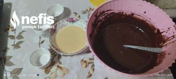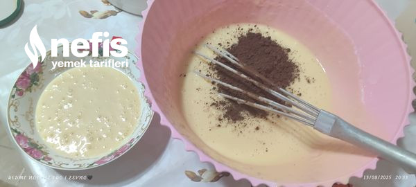 - Tek renk de yapabilirsiniz lakin benim üzere 2 renk yapmak isterseniz kekinizden 1/3 bir kaseye ayırın sonra kakaoyu katın karıştırın.