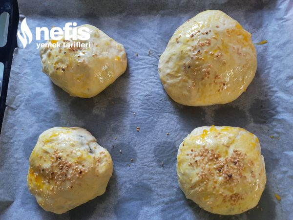 8. Tepsiye alınca üzerine susam ve yumurta sürerek 180 derecede fırına verelim. Afiyet olsun.