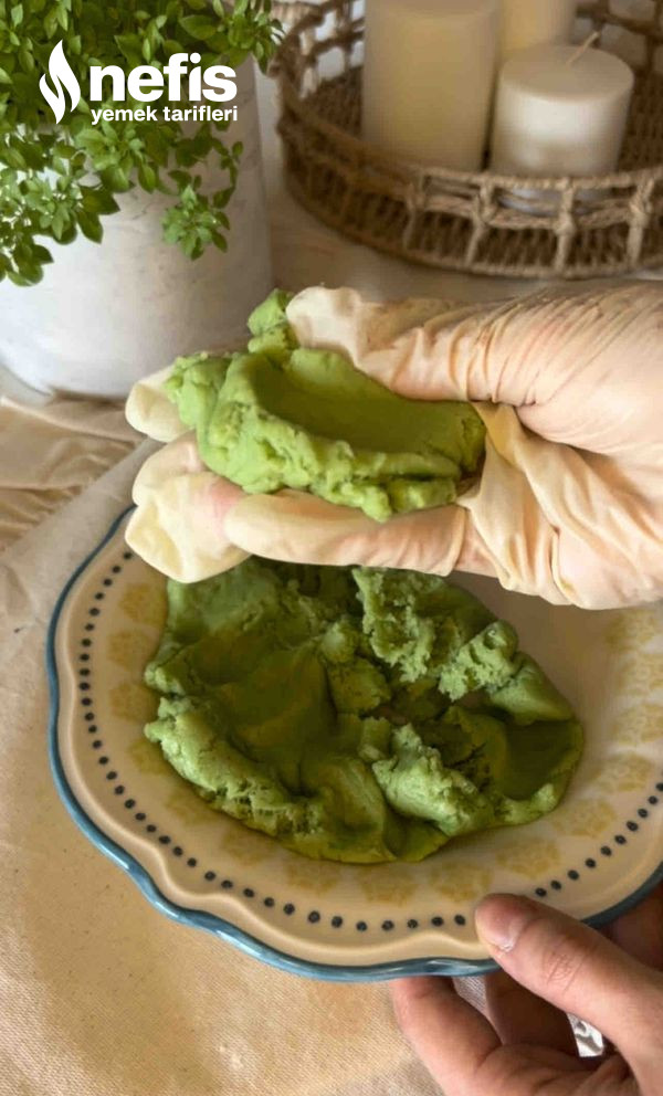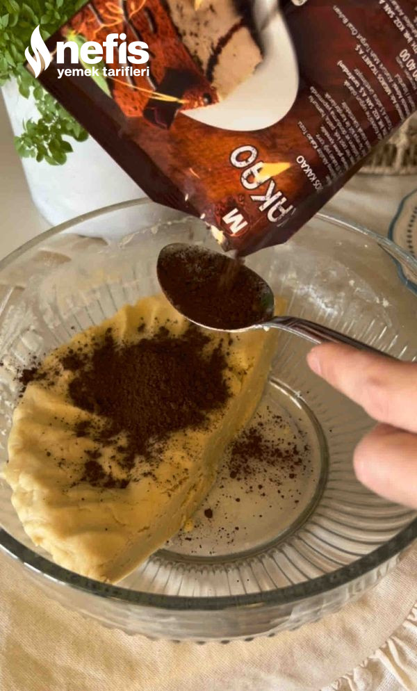 - Hazırladığımız hamurun 2/3üne kakao, 1/3üne yeşil besin boyası ekleyip homojenleşene kadar yoğuralım.