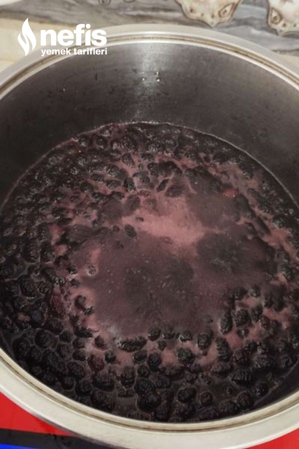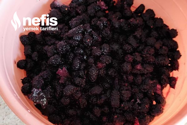 1. Buzluktan çıkarttığımız kara dutu 5 dk erimeye bırakalım ve üzerine toz şeker ekleyelim akabinde su ekleyelim.