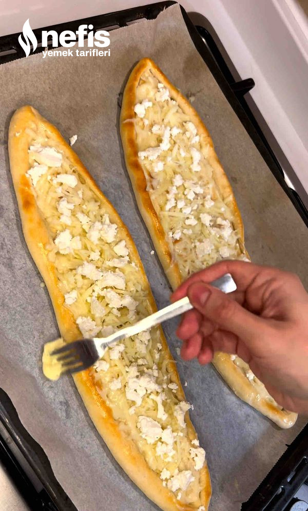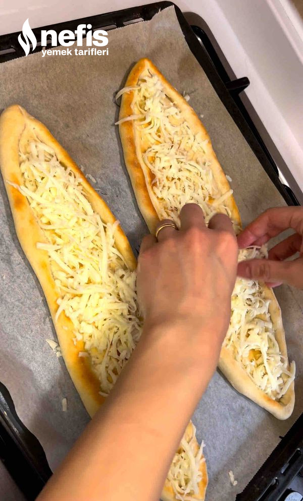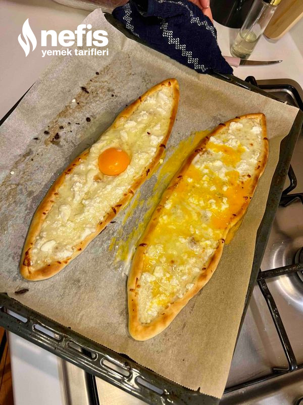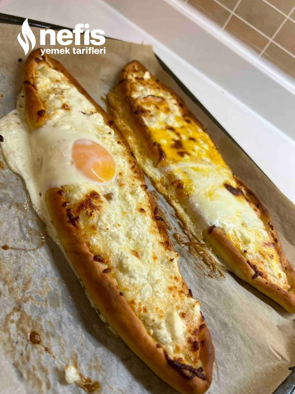 14. Yumurtaları kırıp tekrar fırına verdiğimiz pideleri yumurtalar pişince fırından alıyoruz.